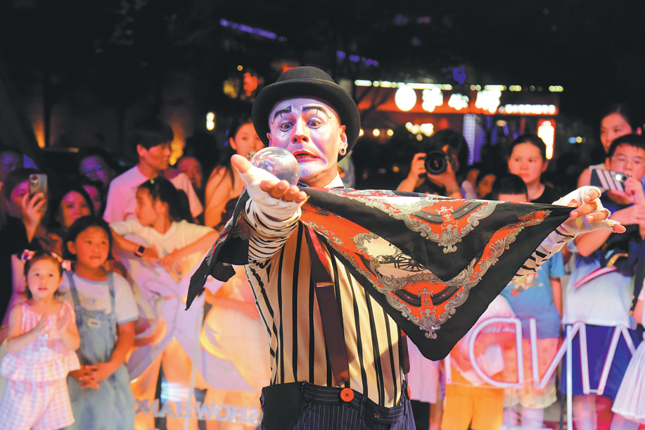 Актьор от Cirque du Soleil, канадска развлекателна група, изпълнява по време на Hangzhou X Show в провинция Zhejiang в Източен Китай на 10 август. LIAN GUOQING/ЗА КИТАЙ ДАЙЛИ