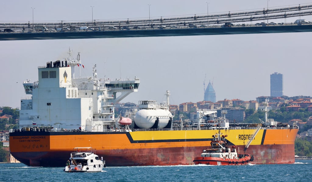 Танкер за суров петрол под руски флаг преминава през Босфора в Истанбул, Турция, през юли 2023 г. Снимка: Reuters