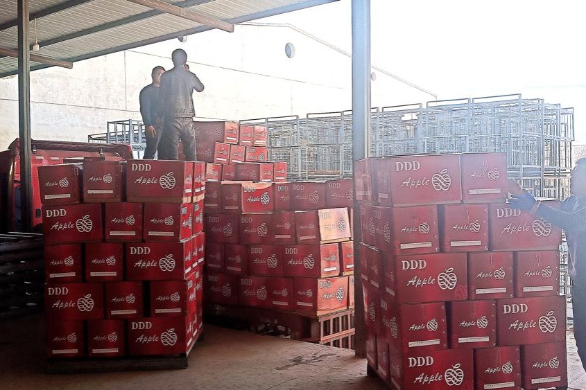 Работници товарят пакети с ябълки, готови за изпращане до Непал. [Photo provided to chinadaily.com.cn]