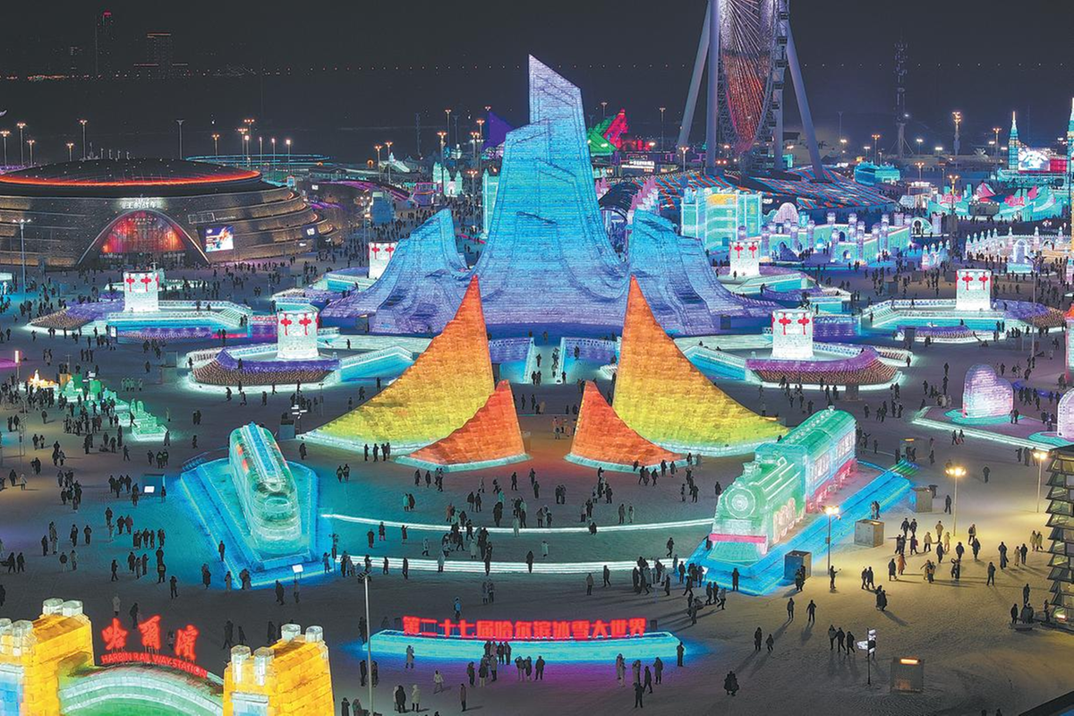 Площта на зимния тематичен парк беше разширена с 1,2 милиона квадратни метра тази година, като общият обем на използвания лед и сняг достигна 400 000 кубически метра – рекорд в историята на годишното събитие, съобщи централната китайска телевизия.