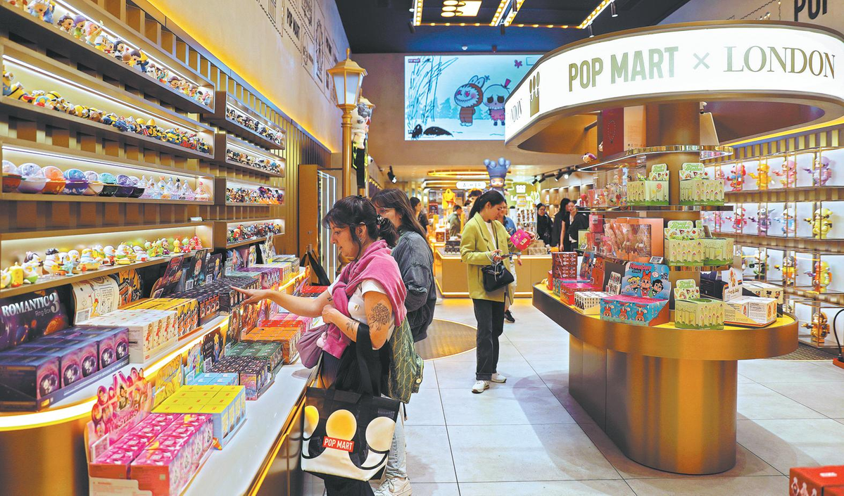 Клиентите разглеждат продукти в магазин поп март на Оксфорд Стрийт в Лондон, на 21 май. Колекционерски играчки, които надхвърлят практическата функция на традиционните играчки, като предлагат по -голяма емоционална стойност, колекционерство и художествена привлекателност, наскоро придобиха популярност сред потребителите в чужбина. Li ying/xinhua