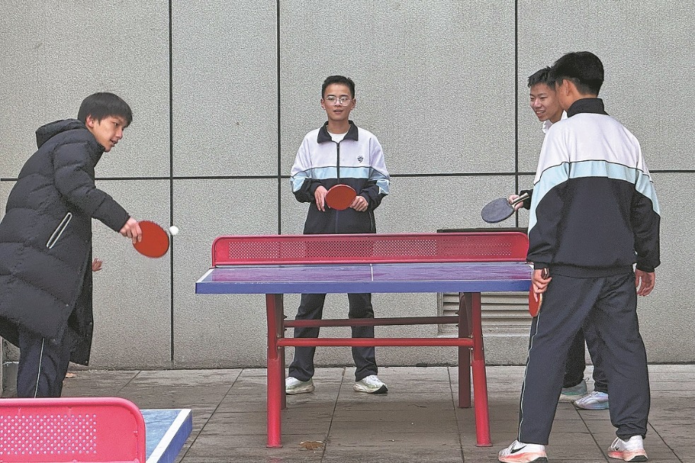 Когато звънецът на класа бие в средно училище Jinan No 9 в Jinan, провинция Shandong, учениците сега се тълпят в новосъздадените спортни зони в близост до учебните сгради, за да се насладят на оживени игри по време на междучасията.
