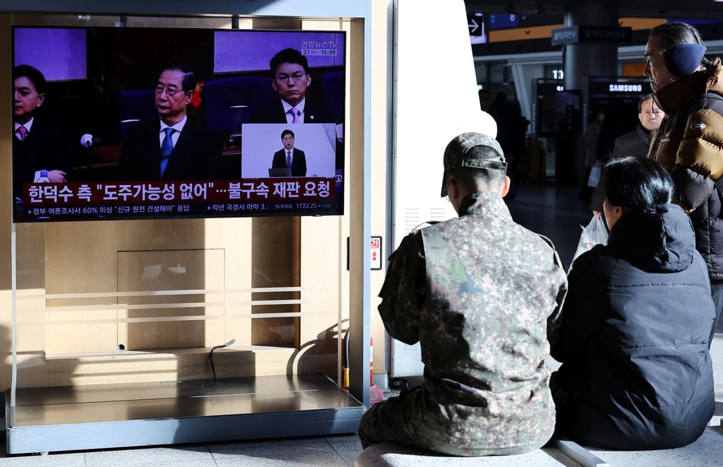 Хората гледат репортаж за съдебното решение на Han Duck-soo в сряда. Снимка: Ройтерс