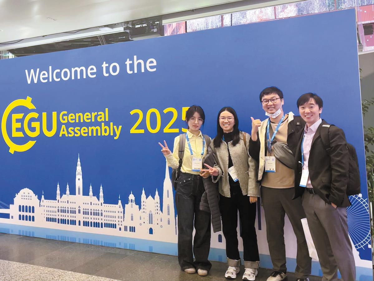 Qin Zhangcai (първо отдясно) води Ванг Йиджи (втори отдясно) и двама от студентите си от университета Sun Yat-Sen в Гуанджоу, провинция Гуандун, за да посети международна конференция в Австрия. Китай ежедневно