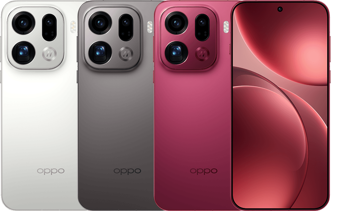 • Find X9: 32 MP предна (Sony IMX615, 1/2.74″); задна тройна: 50 MP основна (Sony LYT-808, 1/1.4″, OIS) + 50 MP ултраширока (Samsung S5KJN5, 1/2.75″) + 50 MP обърнат перископен телескоп (Sony LYT-600, 1/1.95″, OIS). Функциите включват 4K снимки на живо, режим Hasselblad XPAN и 4K 120 fps 10-bit LOG видео.