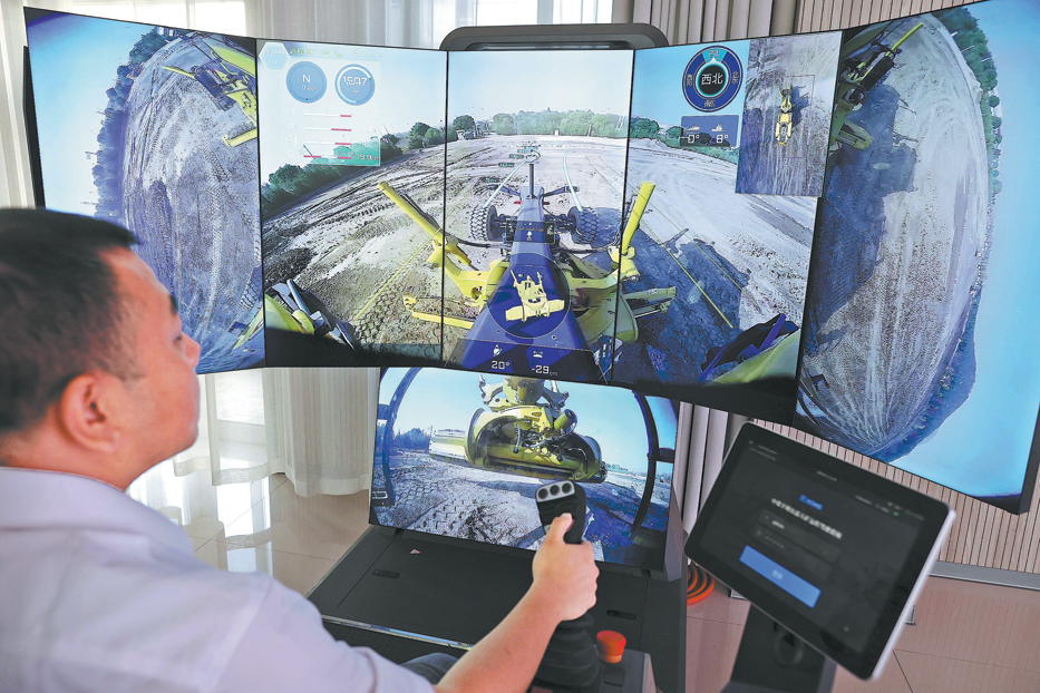 Служител на China Coal Pingshuo Co Ltd управлява дистанционно оборудване за добив. ZHU XINGXIN/КИТАЙ ДЕЙЛИ